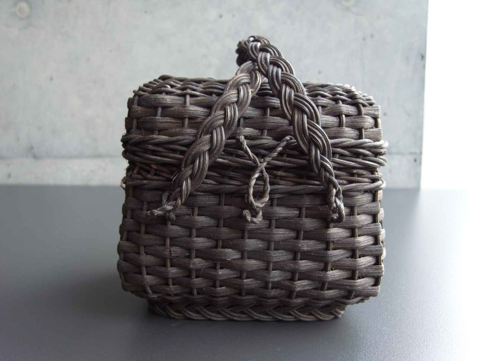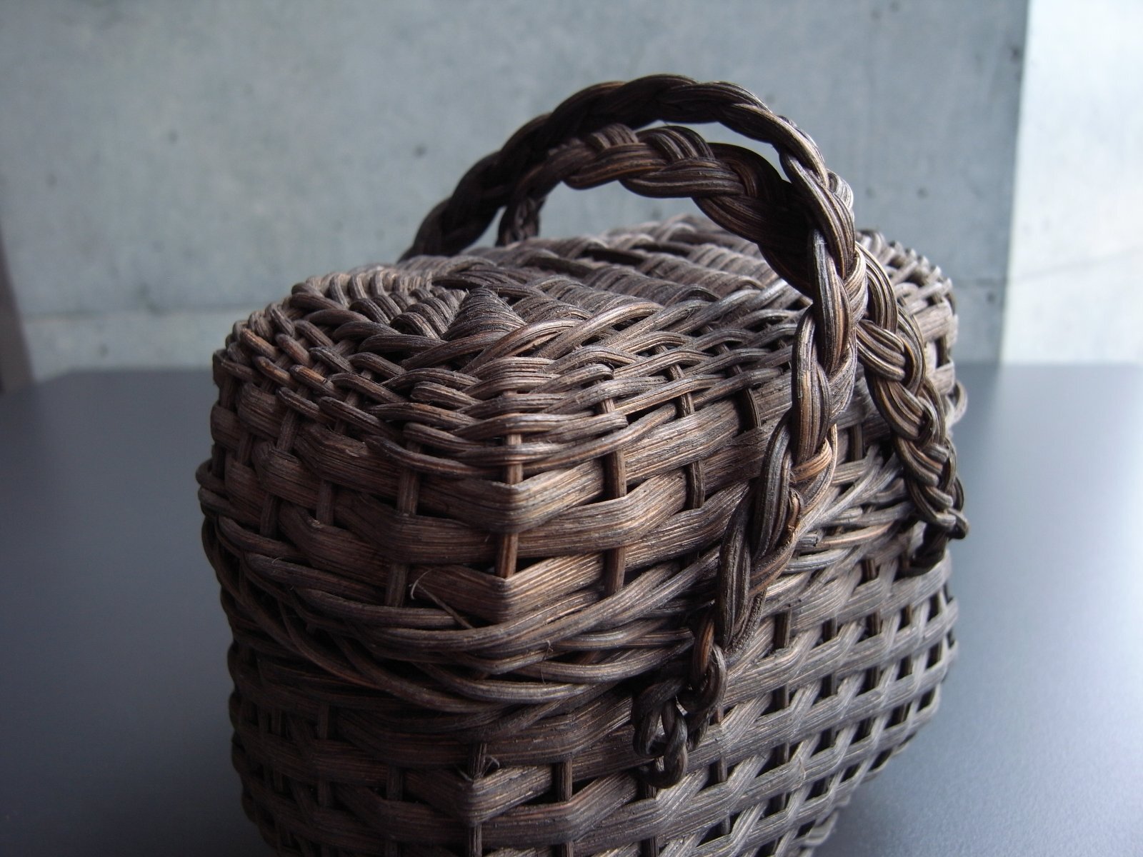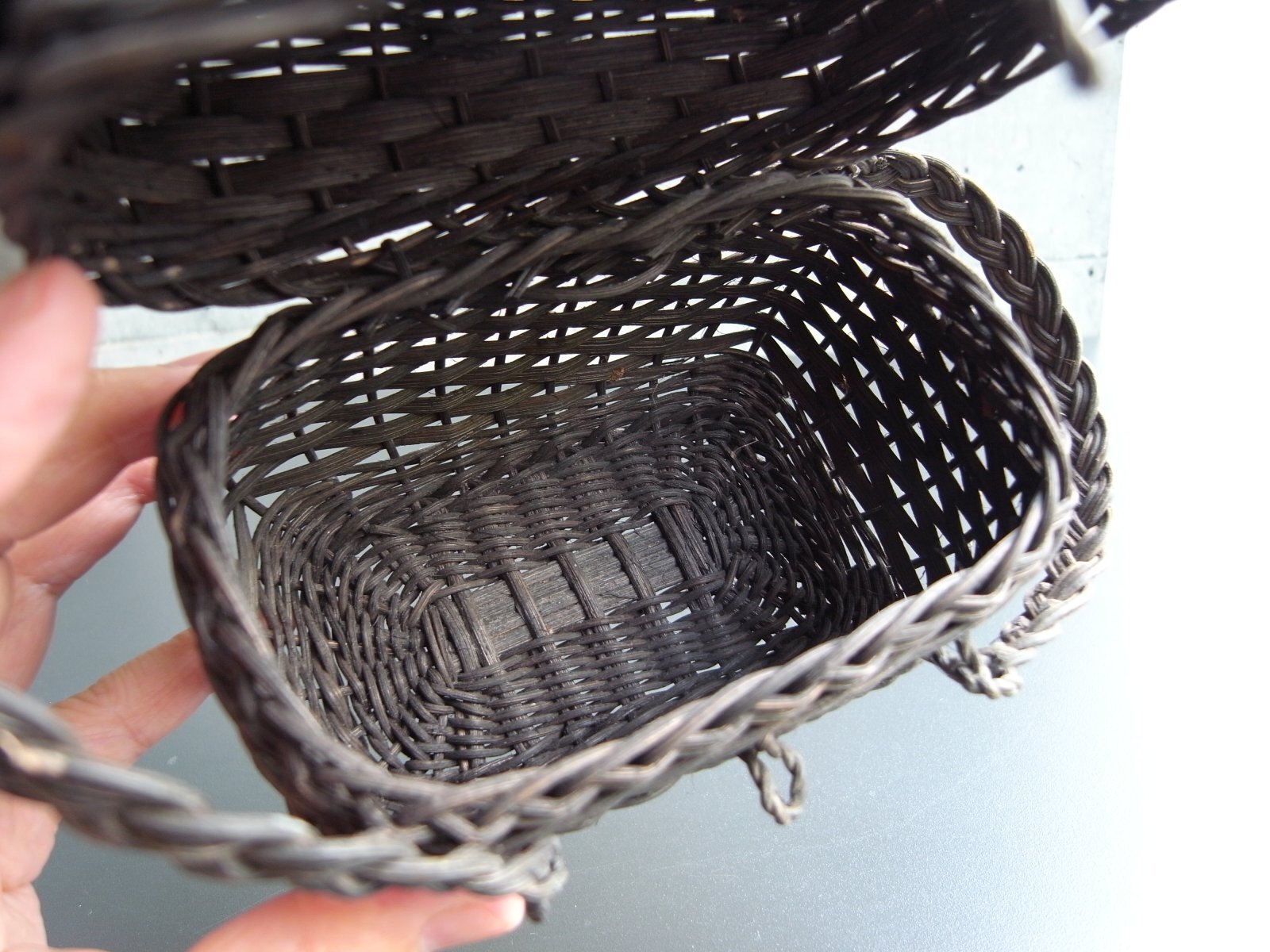 ドールサイズの蓋付き黒パニエ フランスアンティーク