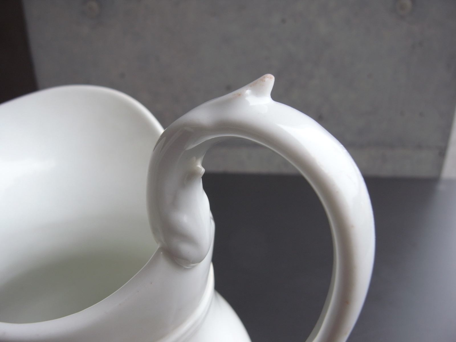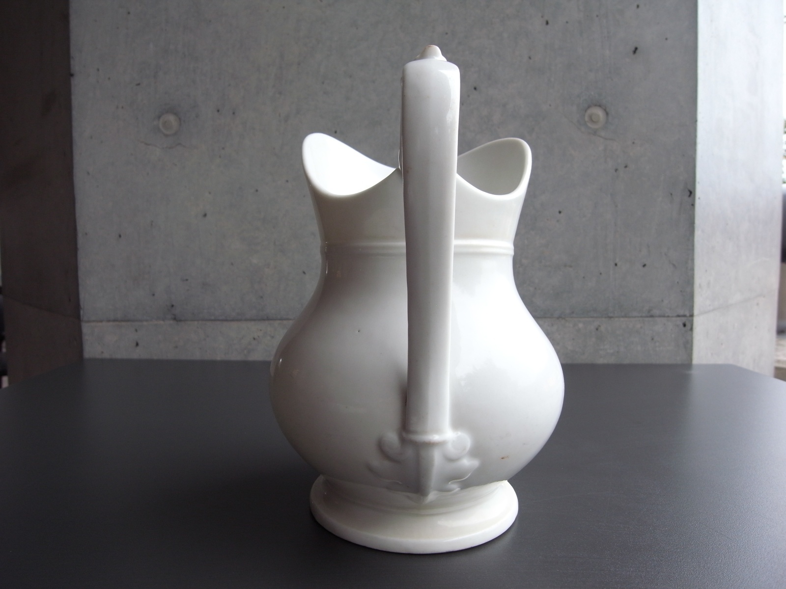 シンプルな白いピシェ フランスアンティーク シンプルな白いピシェ フランスアンティーク 販売価格: 4,300円(税込) 在庫なし お問い合わせ シンプルでスタンダードな白いピシェ。 使いやすい標準サイズと言えると思います。 内側の中身もキレイです。 19世紀のお品物ですので黒点や経年によるスレ、色ジミ、 釉薬のたまりが強く出ているところがございます。 取手の下の方に、ひび割れ箇所がございます。 (お値段に反映しております。強度には問題ございません) バックスタンプがありませんでしたので、 どこの釜かは特定できませんでした。 胴体の丸みの部分の幅 13. 5センチ 高さ 約20センチ 容量 約800ml 他の写真