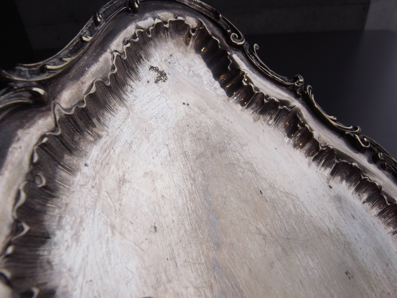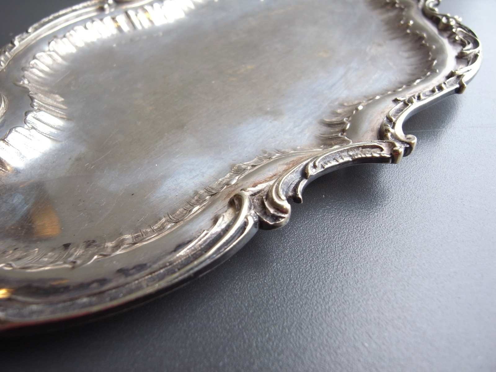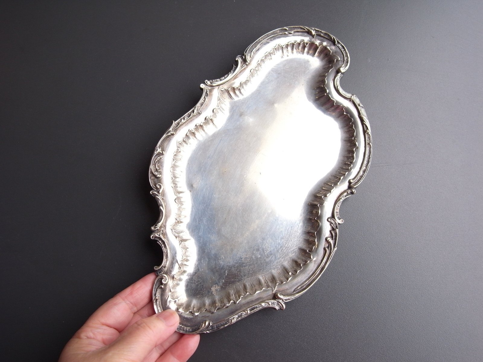 ロカイユ装飾が美しいトレイ フランスアンティーク ロカイユ装飾が美しいトレイ フランスアンティーク 販売価格: 4,300円(税込) 在庫なし お問い合わせ わたしのコレクションより。 曲線のロカイユ装飾の、 シルバープレートのトレイです。 細かなレリーフやしなやかなフォルムが とてもエレガントですね。 経年による、シルバーのハゲや黒ズミ、 突起の跡がみられますが、 アンティークとして良い味わいになっています。 長辺 約27.2センチ 短辺 約15.5センチ 高さ 約1.2センチ 他の写真