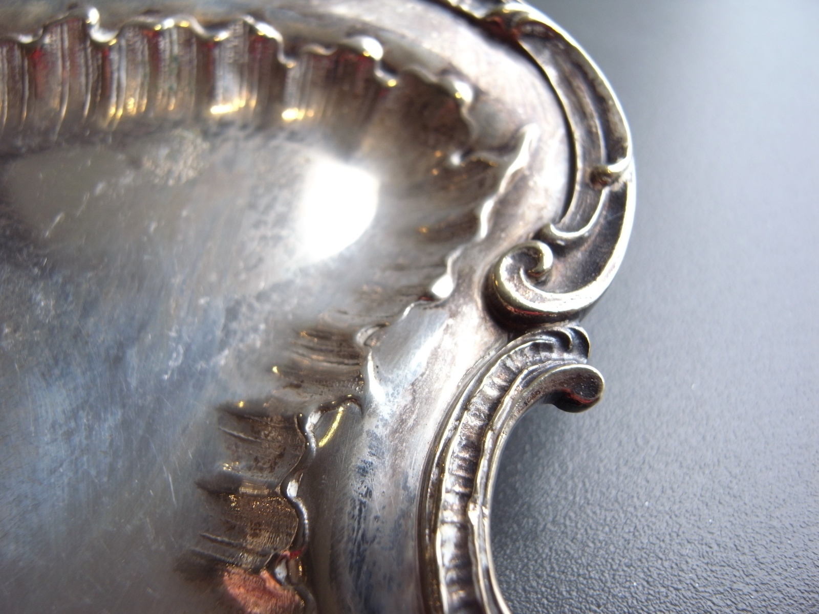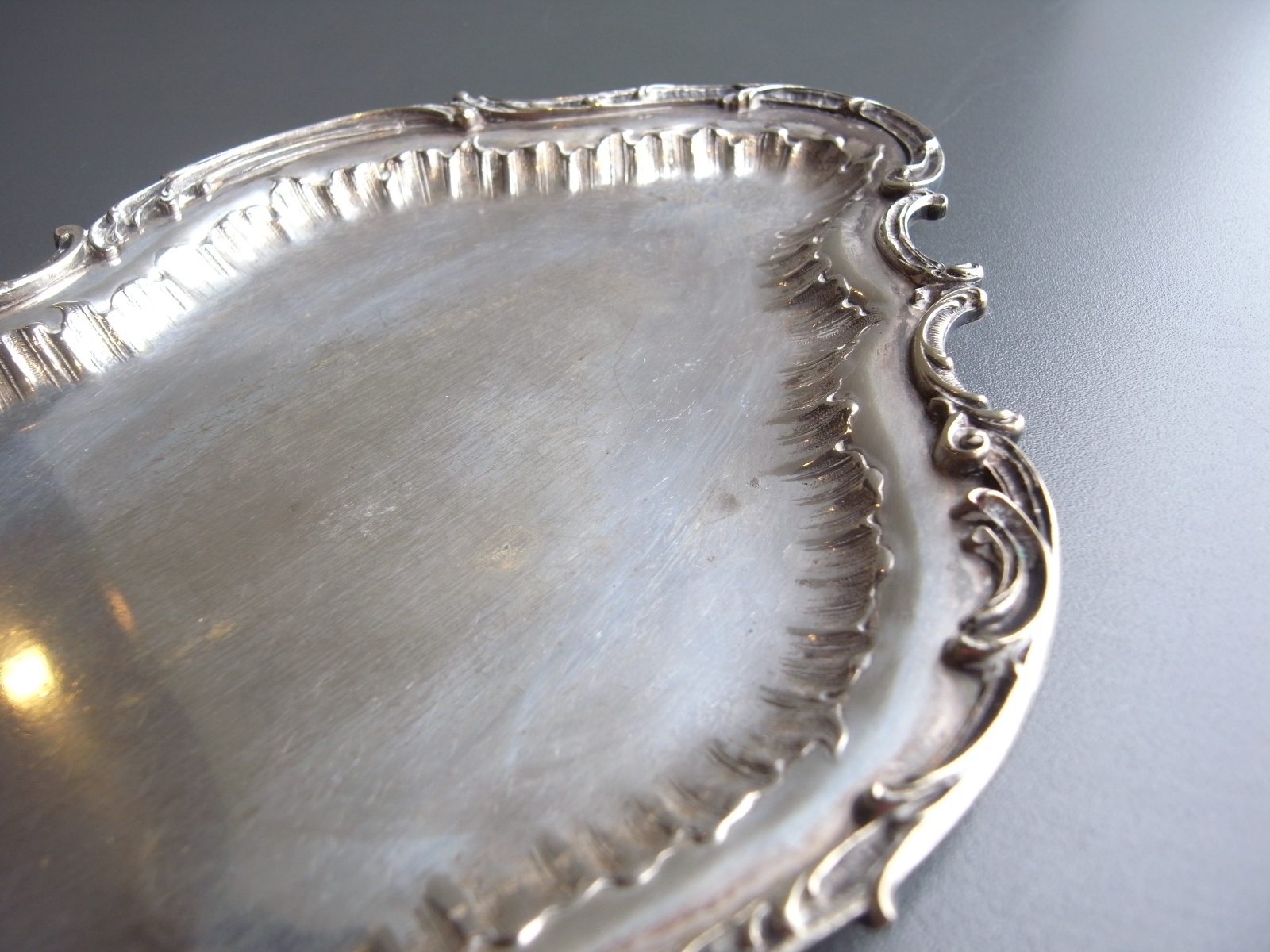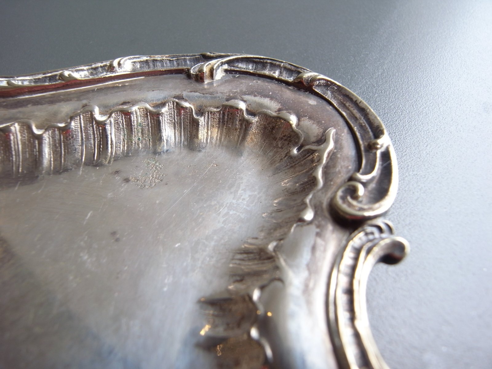 ロカイユ装飾が美しいトレイ フランスアンティーク ロカイユ装飾が美しいトレイ フランスアンティーク 販売価格: 4,300円(税込) 在庫なし お問い合わせ わたしのコレクションより。 曲線のロカイユ装飾の、 シルバープレートのトレイです。 細かなレリーフやしなやかなフォルムが とてもエレガントですね。 経年による、シルバーのハゲや黒ズミ、 突起の跡がみられますが、 アンティークとして良い味わいになっています。 長辺 約27.2センチ 短辺 約15.5センチ 高さ 約1.2センチ 他の写真
