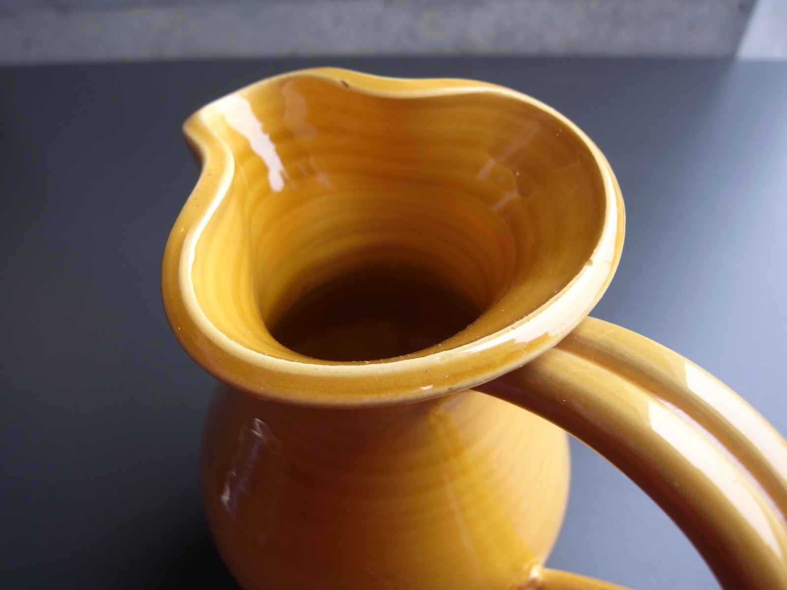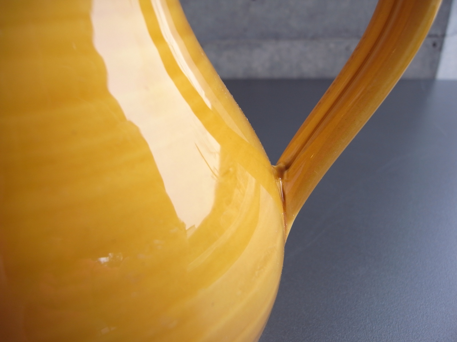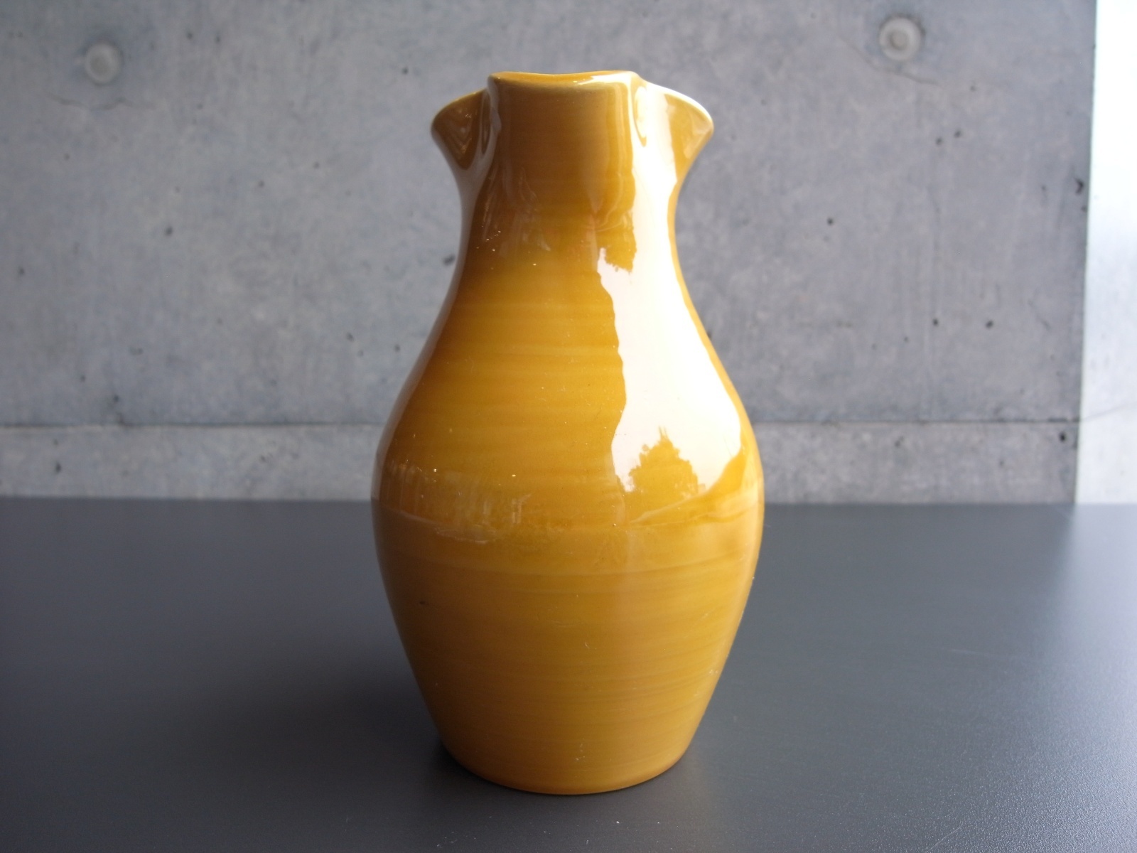 南仏、ピション窯のジャグ フランスアンティーク 南仏、ピション窯のジャグ フランスアンティーク 販売価格: 4,300円(税込) 在庫数 1点 数量: 1 お問い合わせ PICHON(ピション)窯の、ジャグ。 春らしい、そして南仏らしいひまわり色で 元気が出ますね!^^ クチ近くにソゲ、少しの釉ムラがみられますが 使用感なく、つややかな良い状態です。 南仏の黄釉の器はわたしも大好きで いつも探しているのでご紹介できて嬉しいです。 高さ 16.5センチ 450ml ほど入ります 他の写真