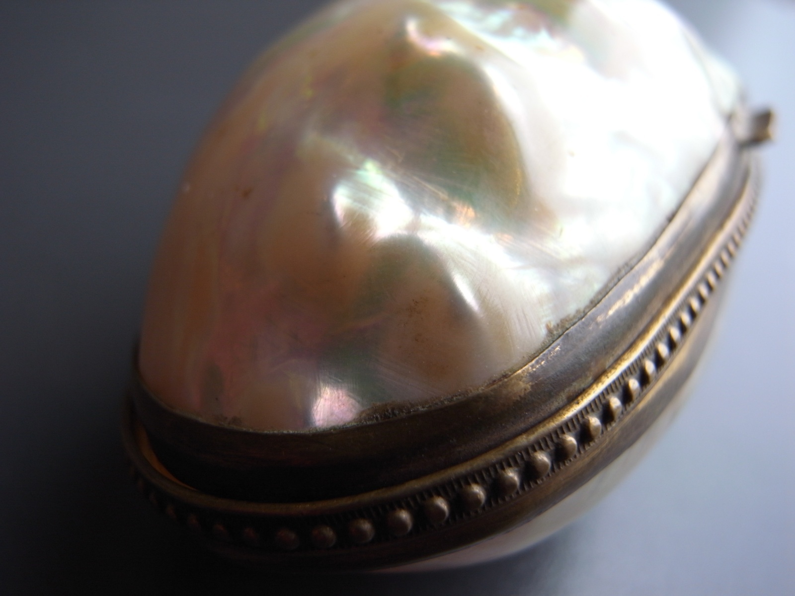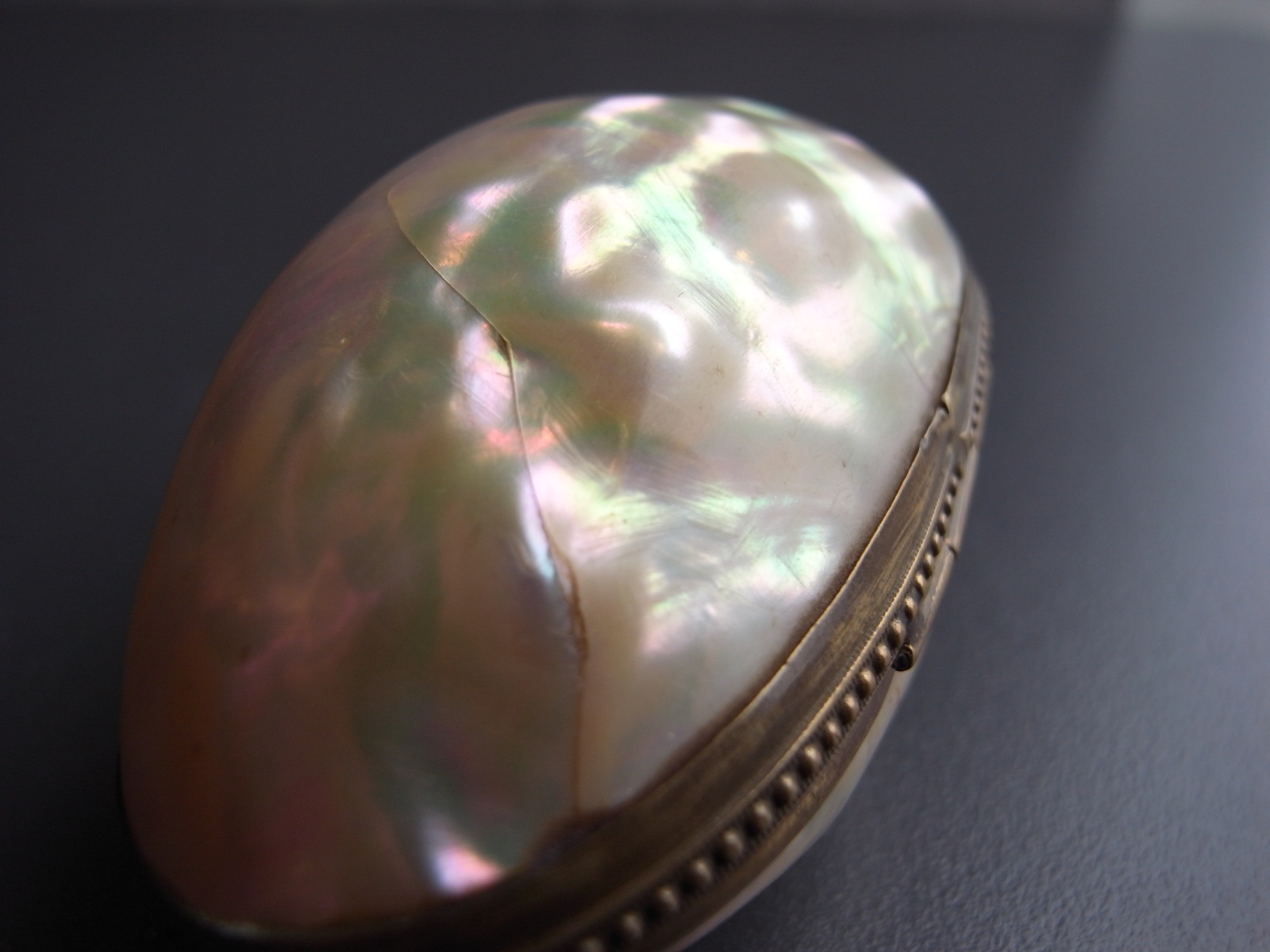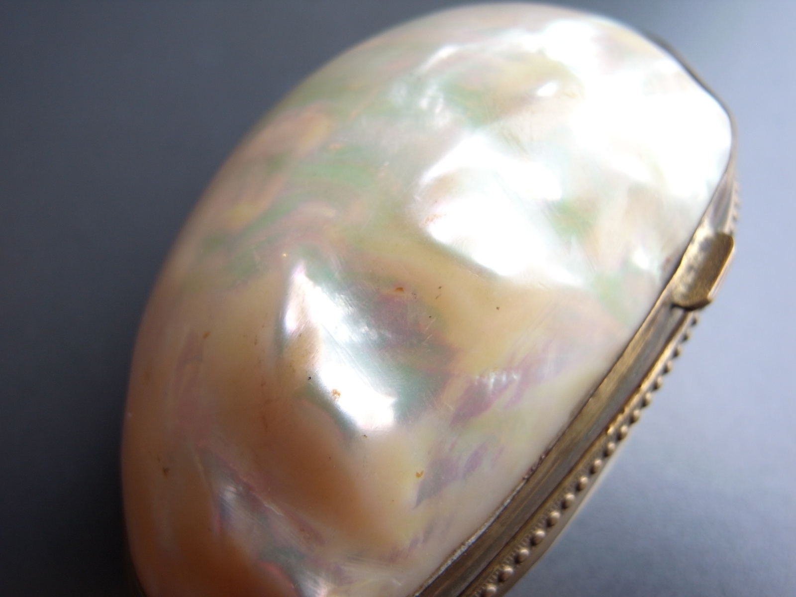 マザーオブパールのロザリオとケース フランスアンティーク マザーオブパールのロザリオとケース フランスアンティーク 販売価格: 3,300円(税込) 在庫数 1点 数量: 1 お問い合わせ 天然素材の白蝶貝を使用した、ロザリオとケースのご紹介です。 ケースには大きな亀裂が入っており、そのためか フタを閉めても隙間があります。 (お値段に反映しております) ロザリオは、首からかけるタイプではなく、 御数珠のように手に持って祈るサイズ感のもの。 ダメージなく、球数も揃っています。 ケース 長辺 約6.8センチ 短辺 約4センチ ロザリオ 長さ 約36センチ 他の写真 天然のものなので、均一ではありません。 ロザリオにダメージはありません。