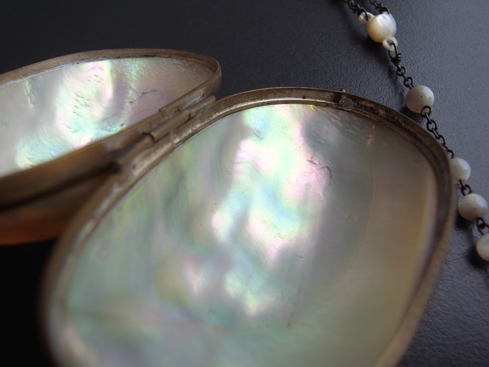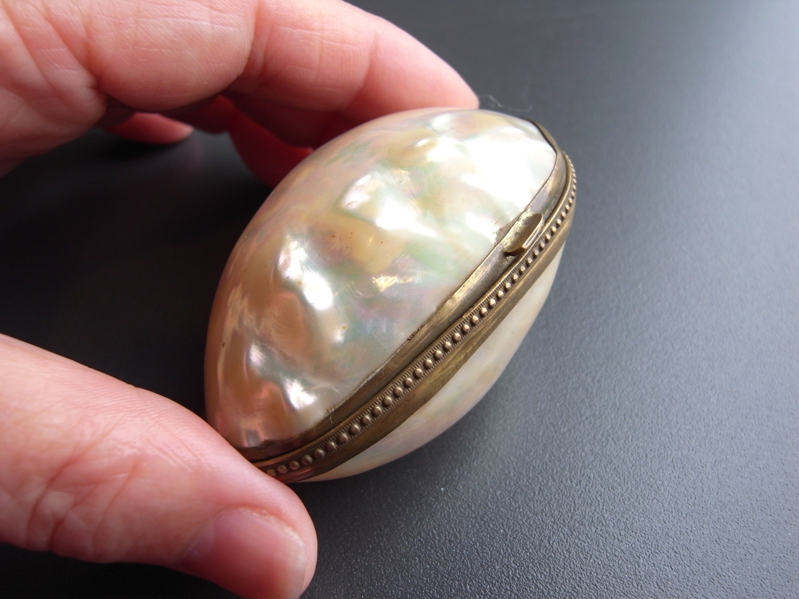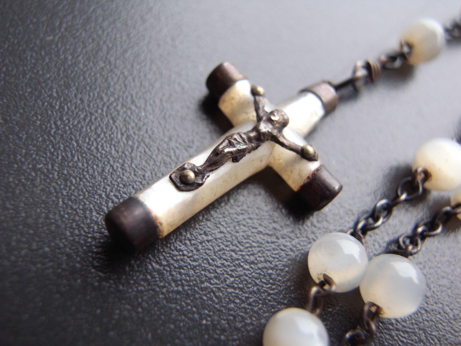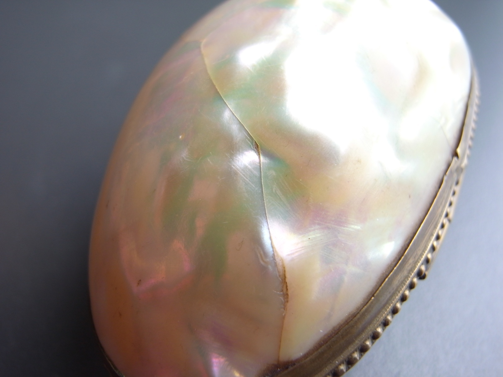 マザーオブパールのロザリオとケース フランスアンティーク マザーオブパールのロザリオとケース フランスアンティーク 販売価格: 3,300円(税込) 在庫数 1点 数量: 1 お問い合わせ 天然素材の白蝶貝を使用した、ロザリオとケースのご紹介です。 ケースには大きな亀裂が入っており、そのためか フタを閉めても隙間があります。 (お値段に反映しております) ロザリオは、首からかけるタイプではなく、 御数珠のように手に持って祈るサイズ感のもの。 ダメージなく、球数も揃っています。 ケース 長辺 約6.8センチ 短辺 約4センチ ロザリオ 長さ 約36センチ 他の写真 天然のものなので、均一ではありません。 ロザリオにダメージはありません。